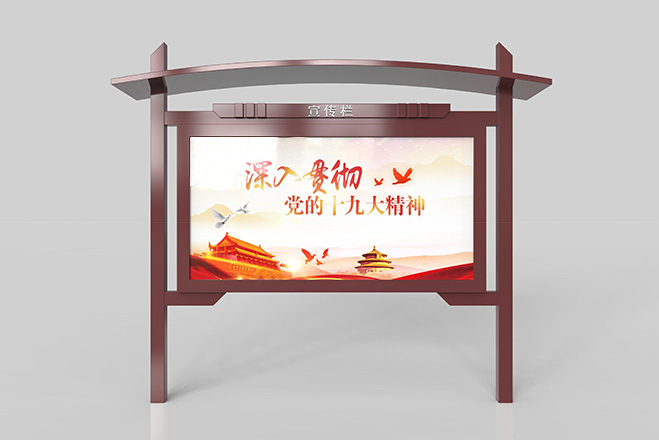 宣傳欄是一種VI應用,是組織或企業(yè)單位等進行自我宣傳的有效手段,常被應用于街道,工廠等公共場所;一般采用不銹鋼為框架,鋼化玻璃或者耐力板為面板,鋁合金為頂棚,面板可以打開更換宣傳畫面。現(xiàn)如今,宣傳欄廣泛應用于學校、小區(qū)、會議館、展廳等各個場地。