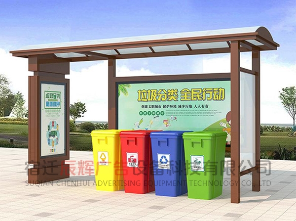 垃圾分類亭一般放在小區(qū)或者公共的地方集合垃圾之用。同樣的材料也可制成配電房、報亭、崗亭、景區(qū)休息室等。宿遷辰輝廣告設(shè)備科技有限公司,我們的產(chǎn)品豐富多元化,應用場景廣泛,也可以根據(jù)客戶的需要來圖定做。